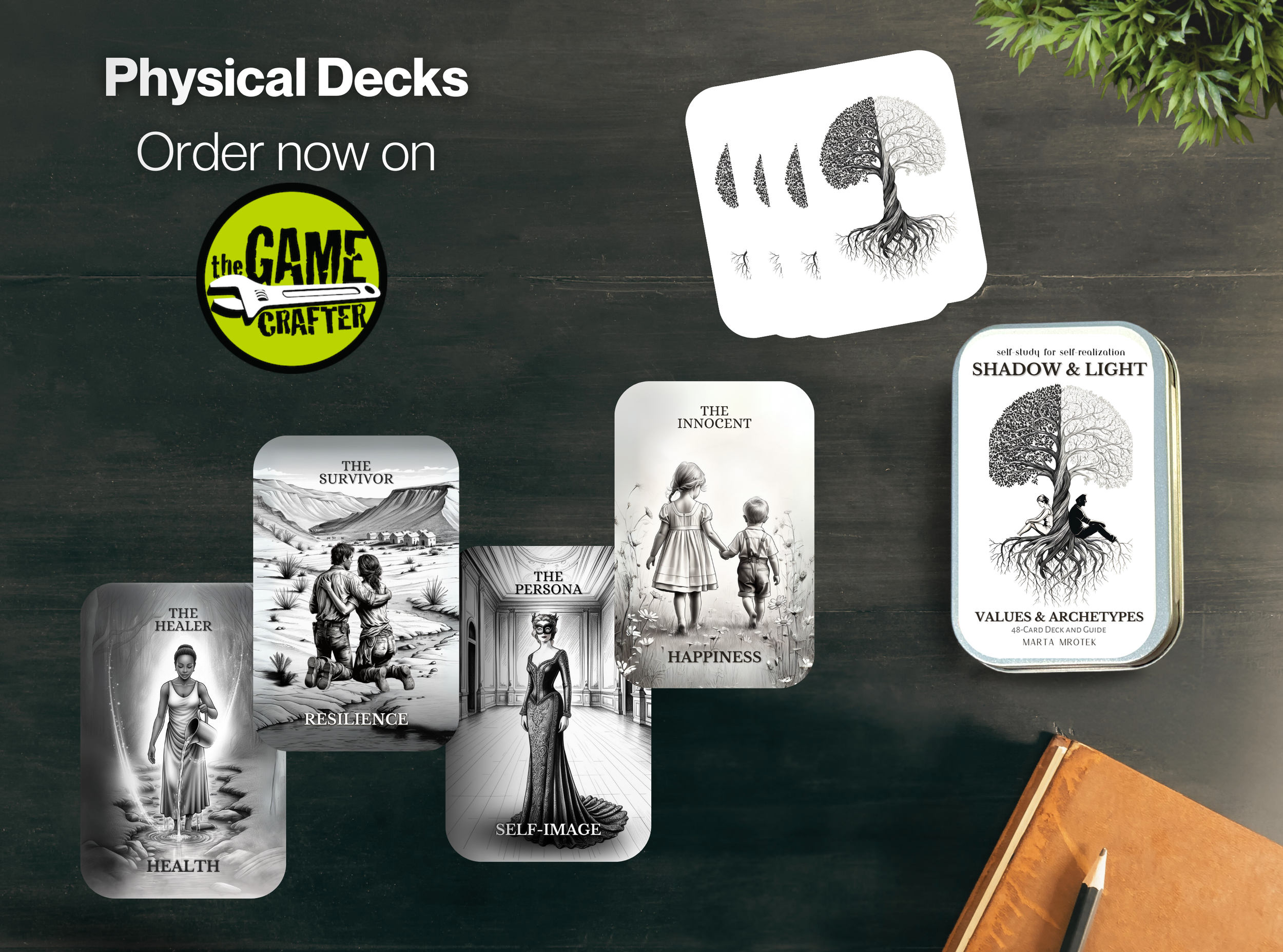 Shadow & Light was created as a tool for assessing what you value most and how that plays out in parts of you that lie just below the surface of your everyday attention. This light approach to shadow work asks you to consider the many shades of gray that define the landscape of your inner world. Explore traditional archetypes, common character archetypes, and some not-so-common characters that work and play together in the unconscious mind. With meticulously detailed black-and-white images, it can be used to add a layer of self-study to any card reading, but its true purpose is to provide a stand-alone guide for gaining a deeper understanding of the many aspects of the Self.